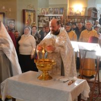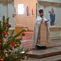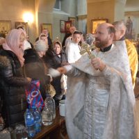 В завершение богослужения настоятель храма священник Димитрий Пимкин поздравил верующих с наступающим праздником Богоявления и окропил освященной водой.