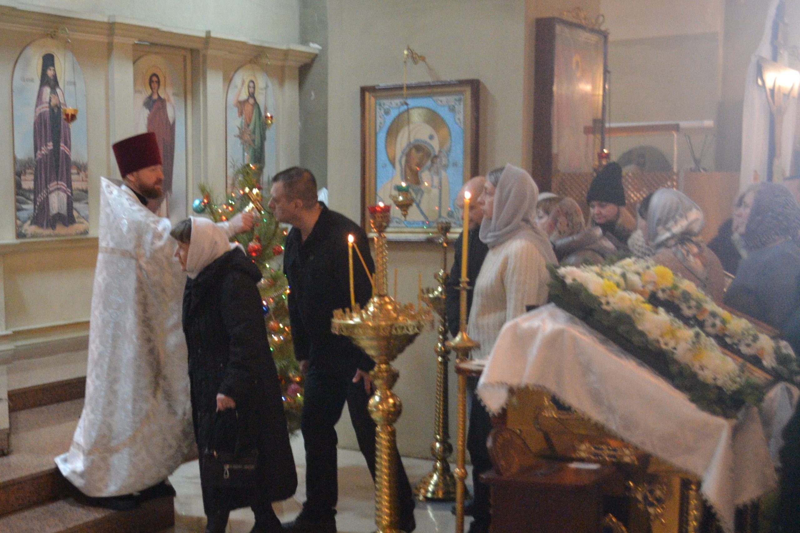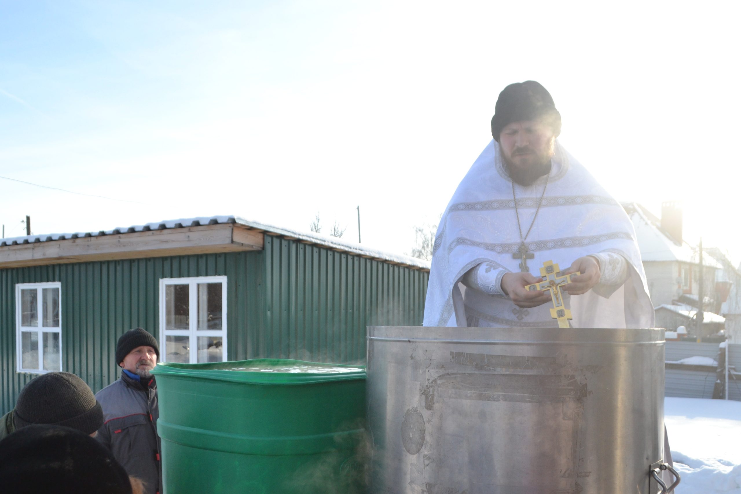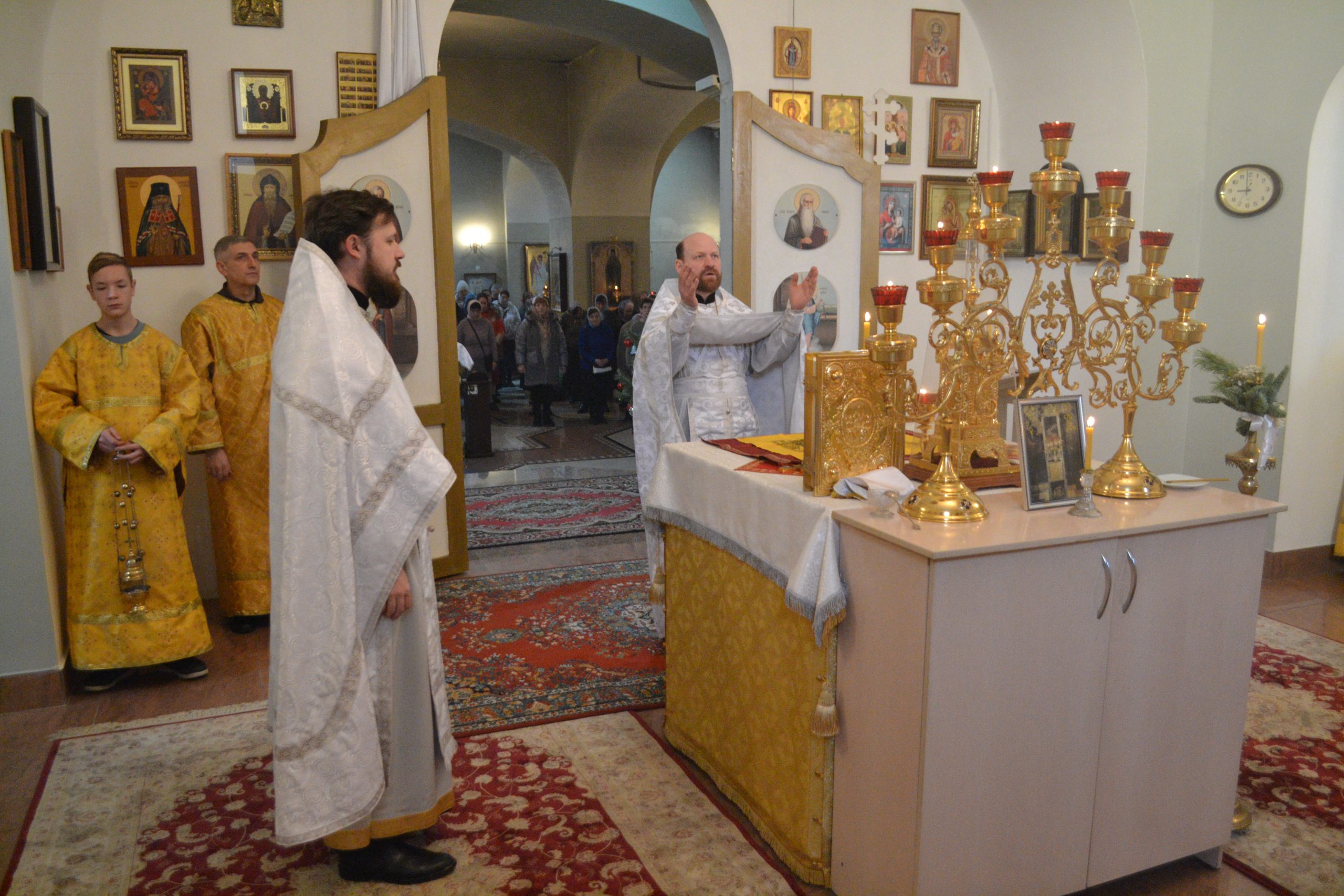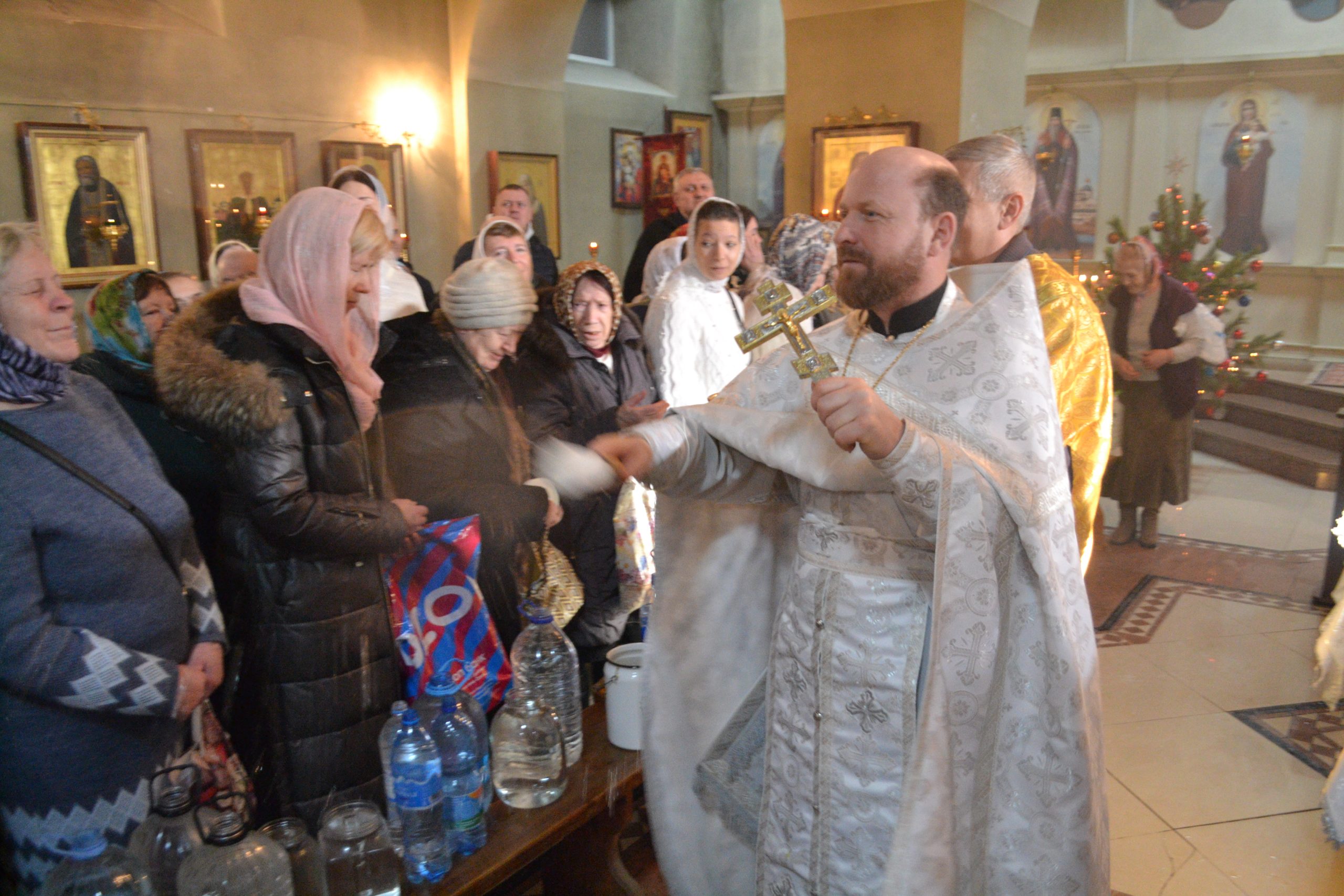 В завершение богослужения настоятель храма священник Димитрий Пимкин поздравил верующих с наступающим праздником Богоявления и окропил освященной водой.