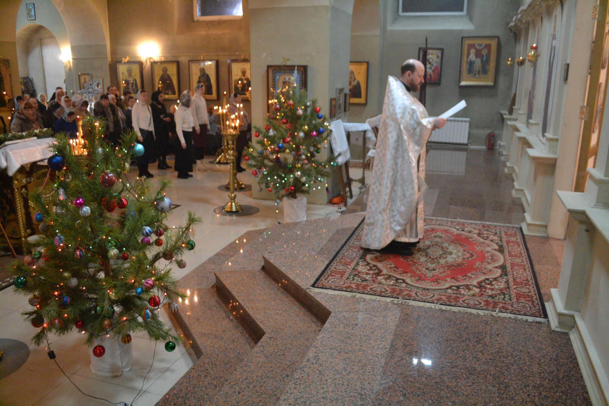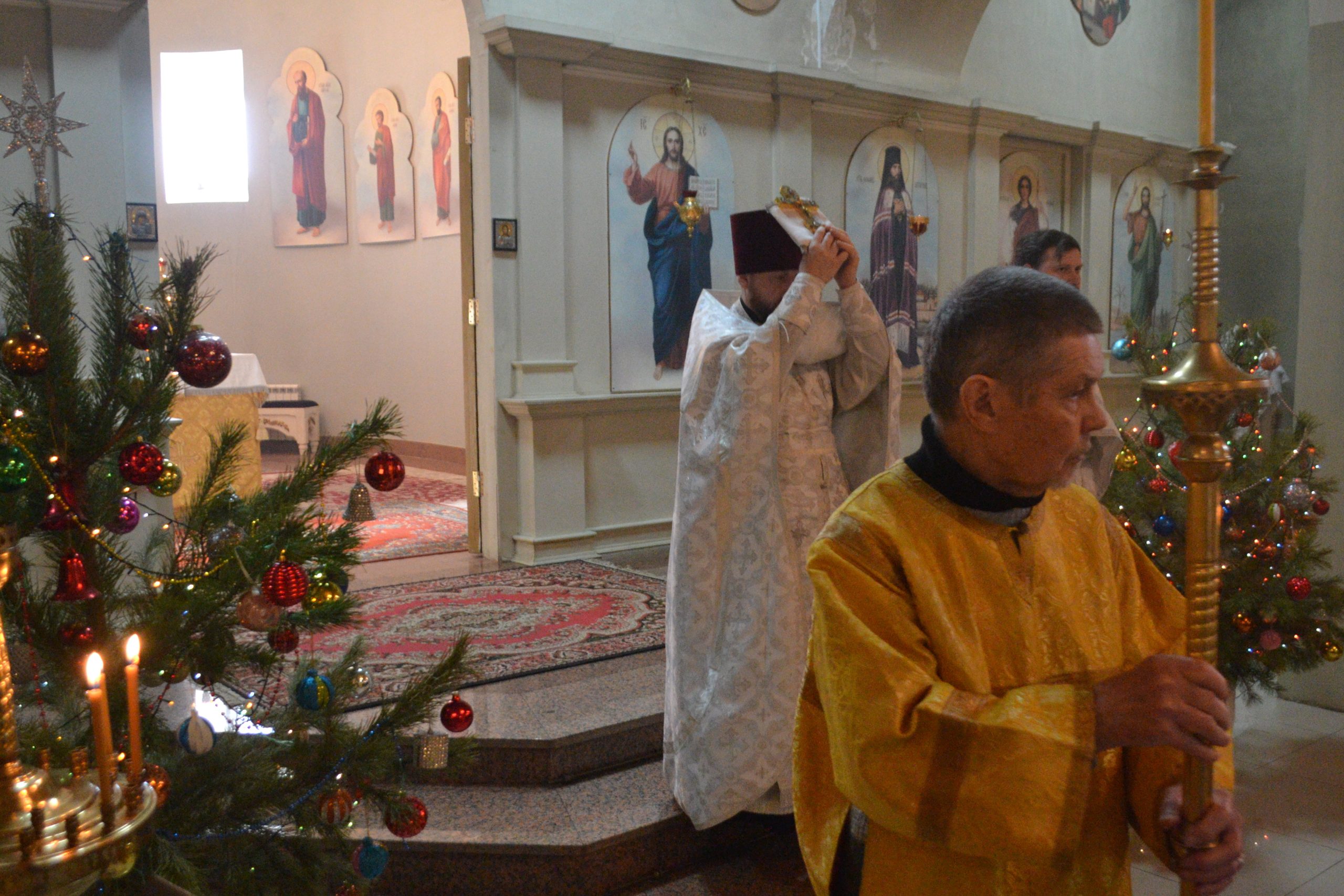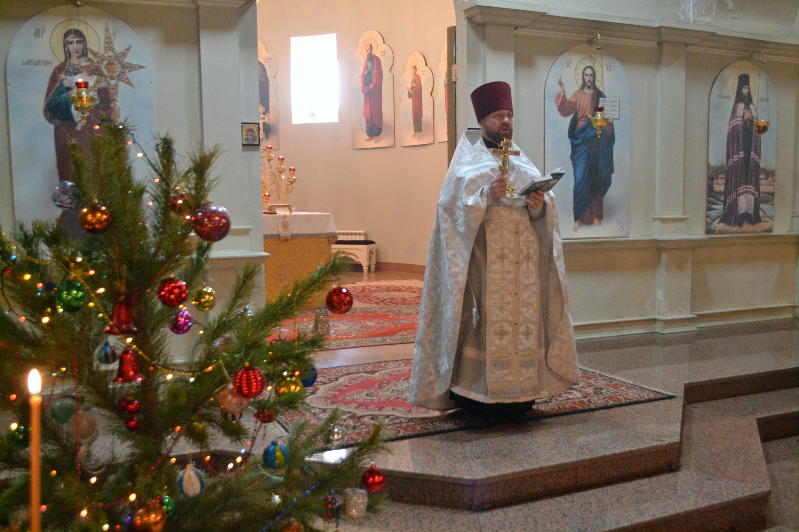 В завершение богослужения настоятель храма священник Димитрий Пимкин поздравил верующих с наступающим праздником Богоявления и окропил освященной водой.