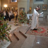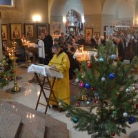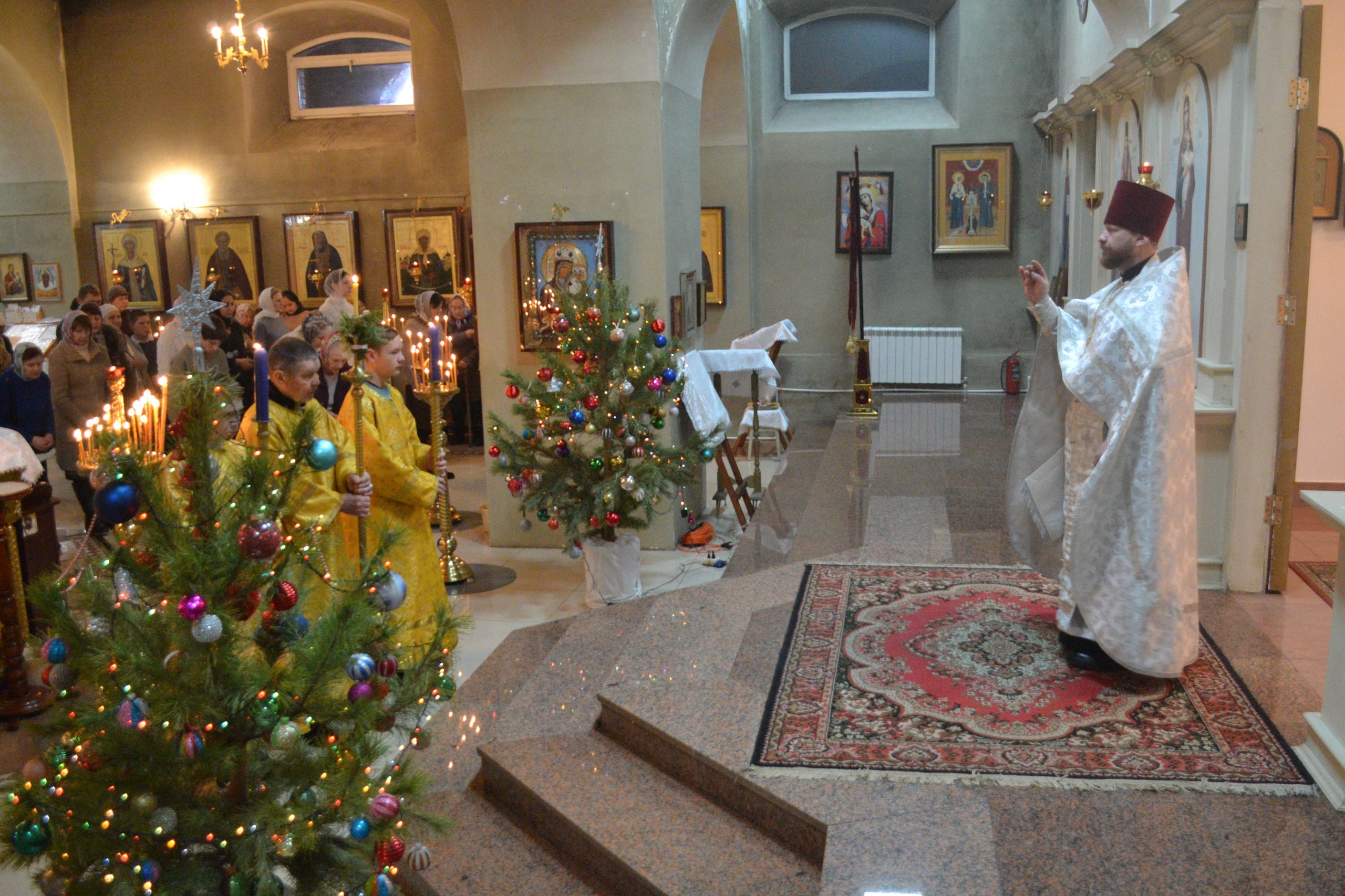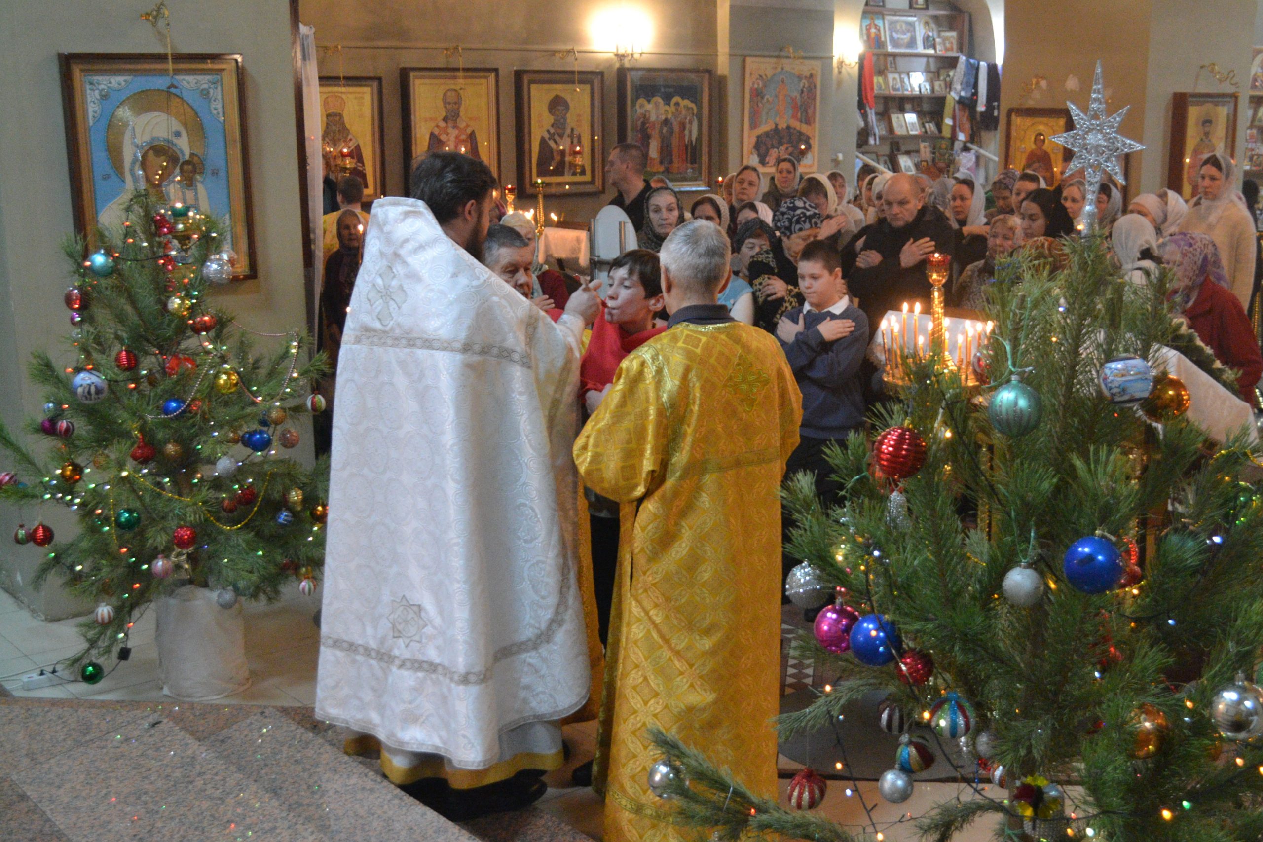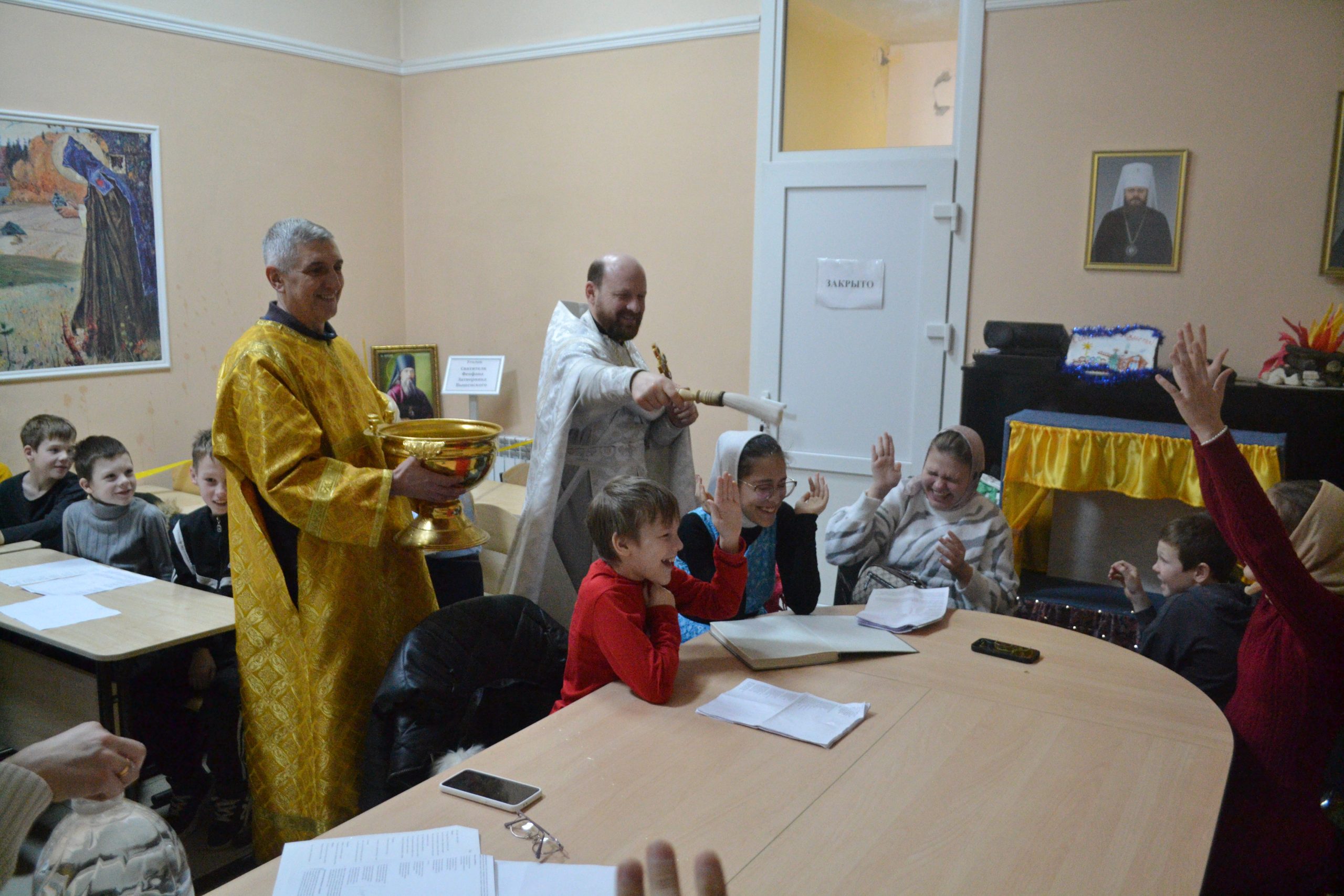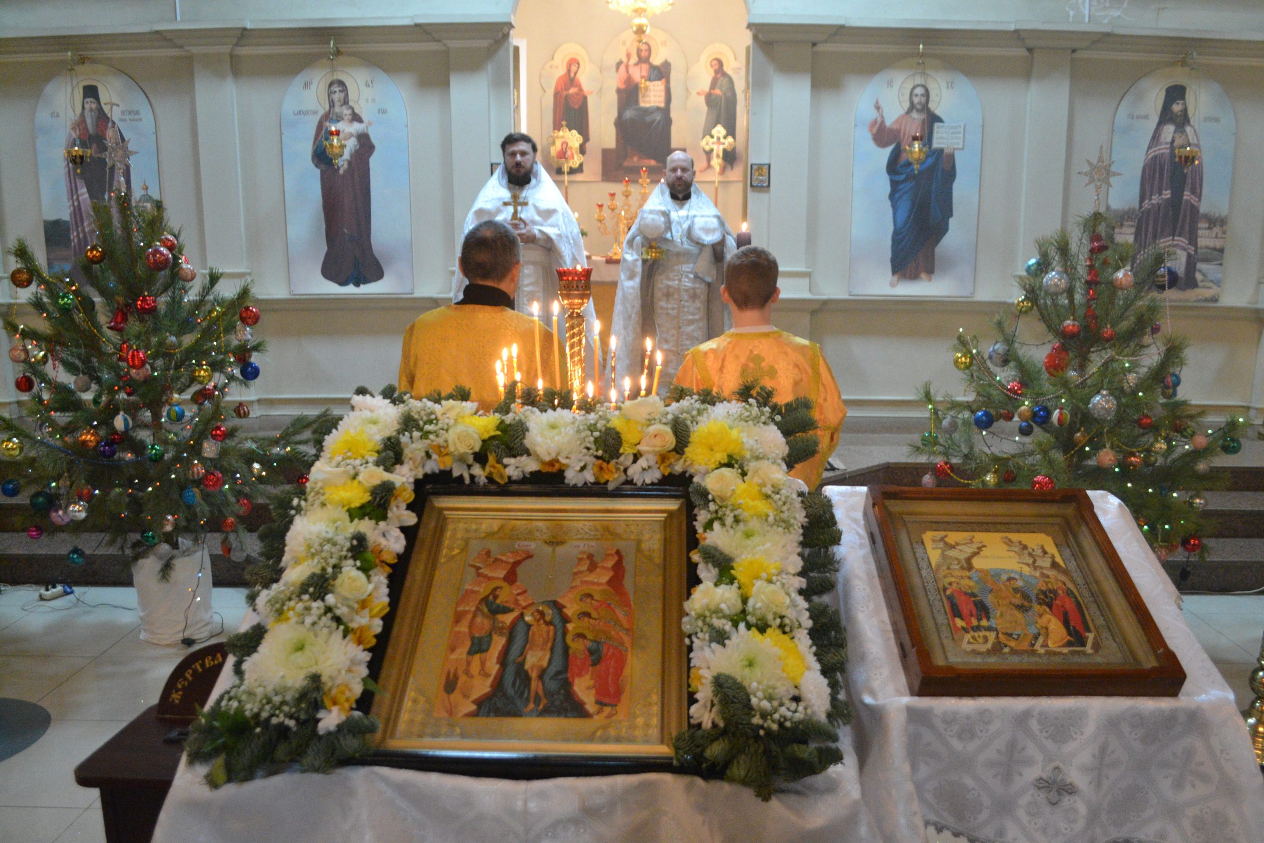 В завершение богослужения настоятель храма священник Димитрий Пимкин поздравил верующих с наступающим праздником Богоявления и окропил освященной водой.