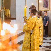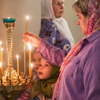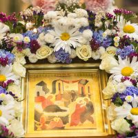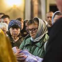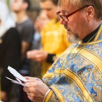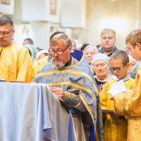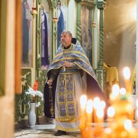 По окончании Литургии было совершено торжественное славление и молебен, после чего иерей Сергий обратился к прихожанам с проповедью и поздравлением.