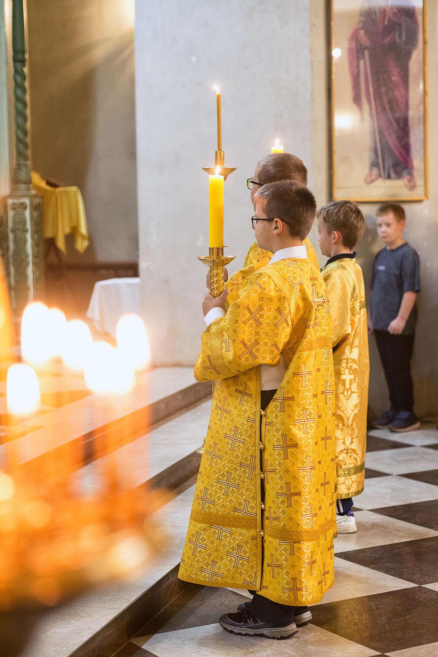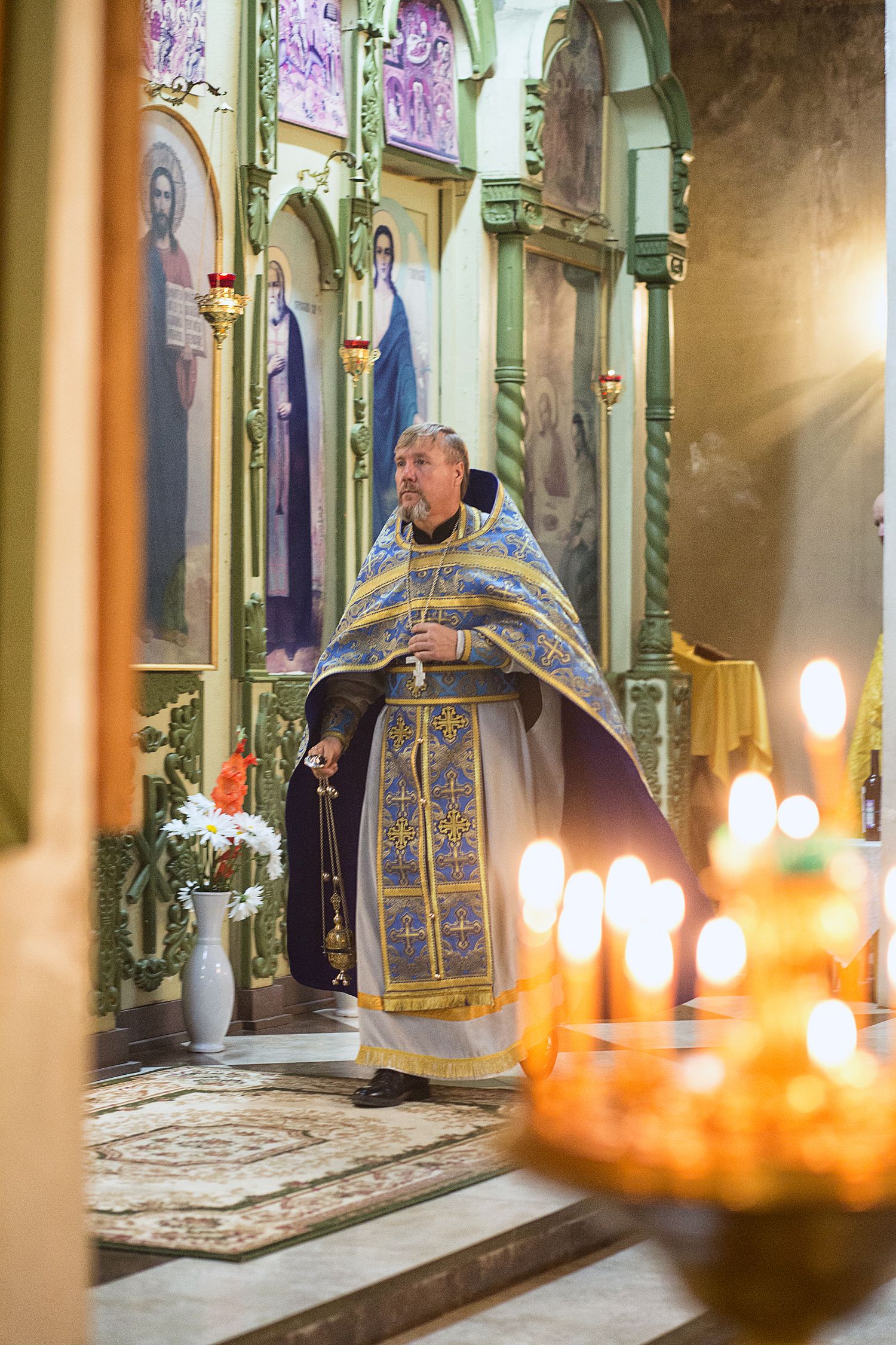 По окончании Литургии было совершено торжественное славление и молебен, после чего иерей Сергий обратился к прихожанам с проповедью и поздравлением.