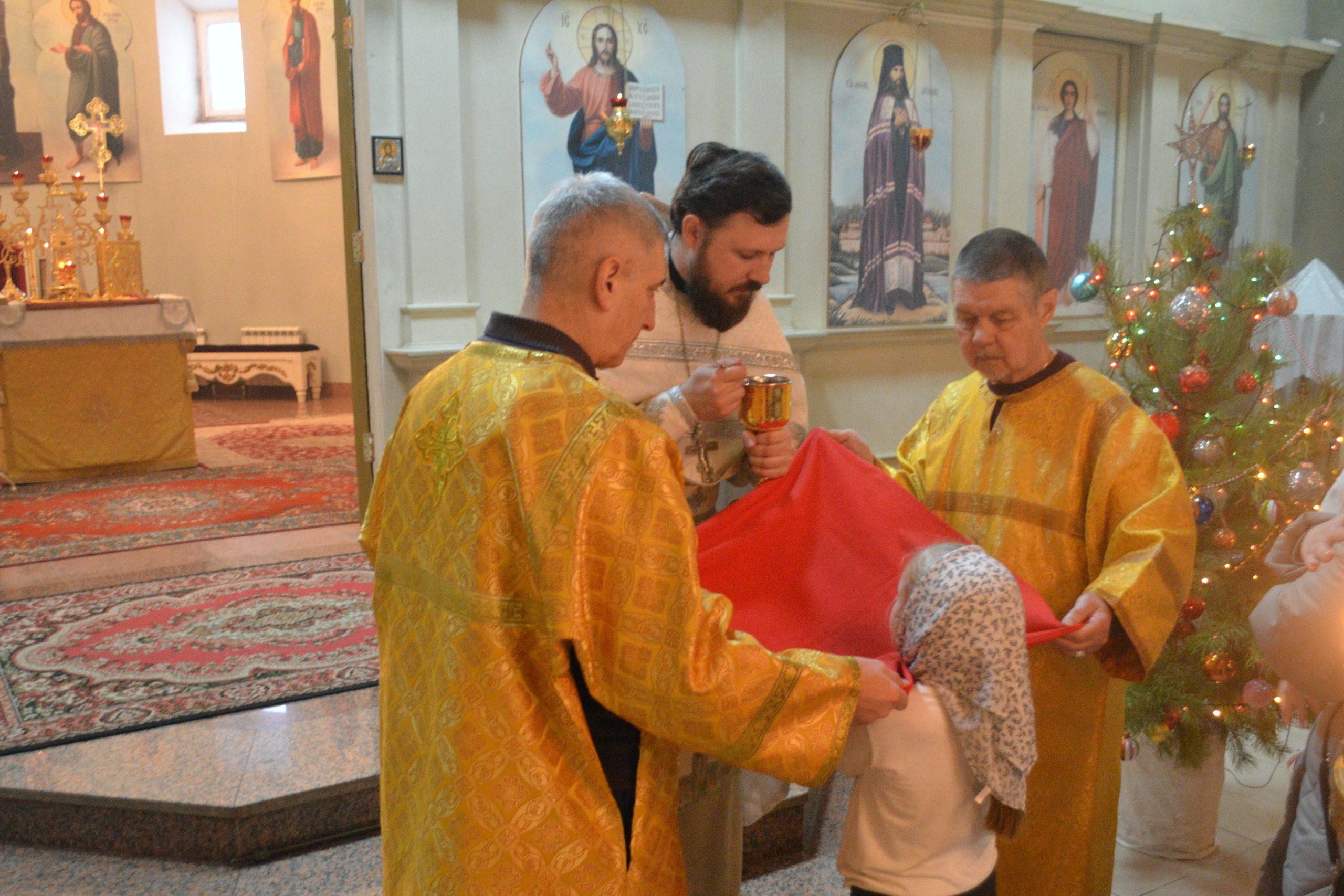 По окончании Божественной литургии было совершено славление, после чего настоятель храма иерей Димитрий Пимкин огласил Рождественское послание митрополита Тамбовского и Рассказовского Феодосия архипастырям, пастырям, монашествующим, всей богоспасаемой пастве Тамбовской митрополии, а затем обратился к прихожанам с проповедью и поздравлением.