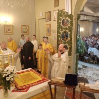 По окончании Литургии было совершено славление празднику, после чего настоятель огласил Рождественское послание Святейшего Патриарха Московского и всея Руси Кирилла архипастырям, пастырям, монашествующим и всем верным чадам Русской Православной Церкви, а затем поздравил прихожан храма.