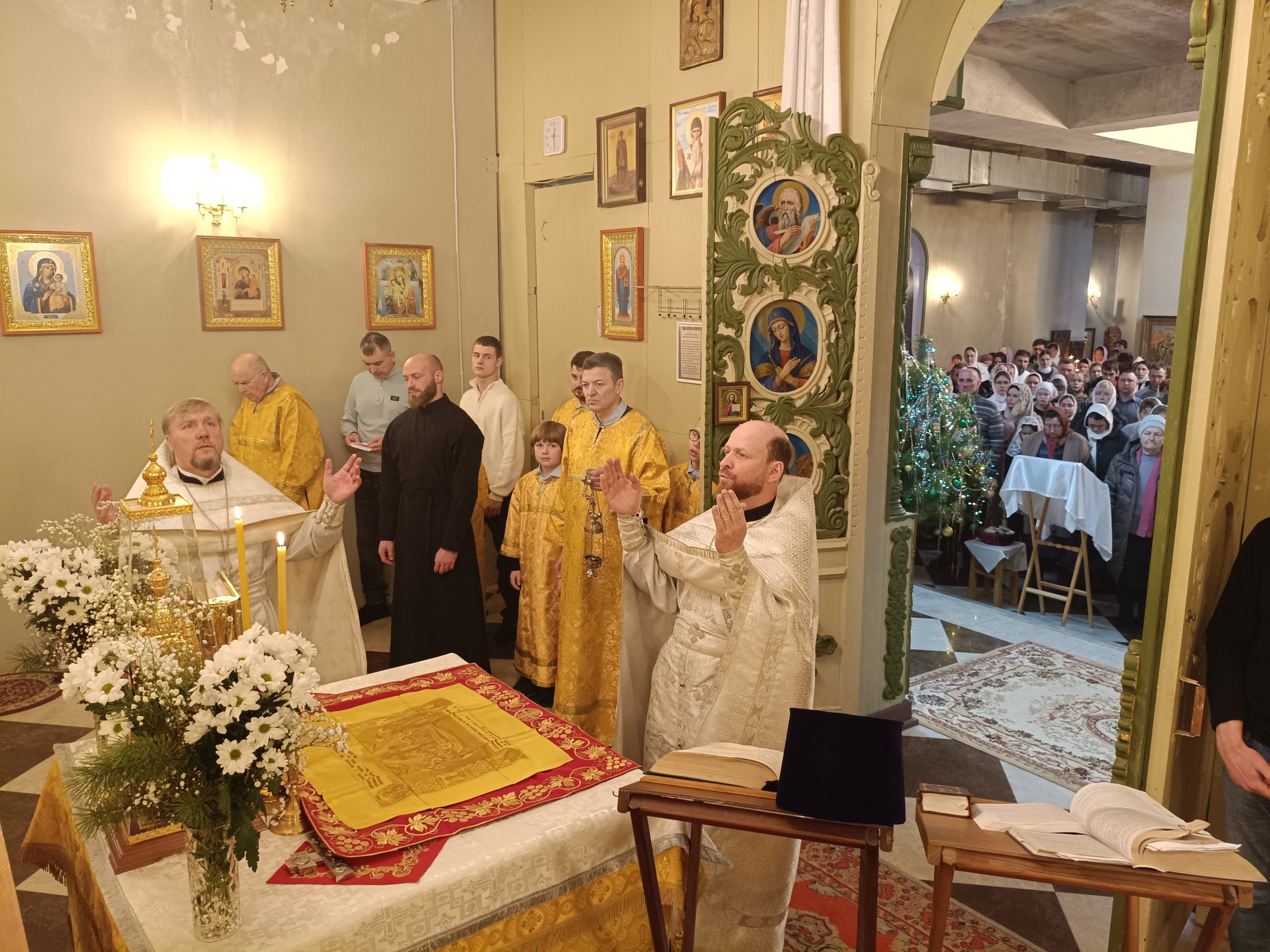 По окончании Литургии было совершено славление празднику, после чего настоятель огласил Рождественское послание Святейшего Патриарха Московского и всея Руси Кирилла архипастырям, пастырям, монашествующим и всем верным чадам Русской Православной Церкви, а затем поздравил прихожан храма.