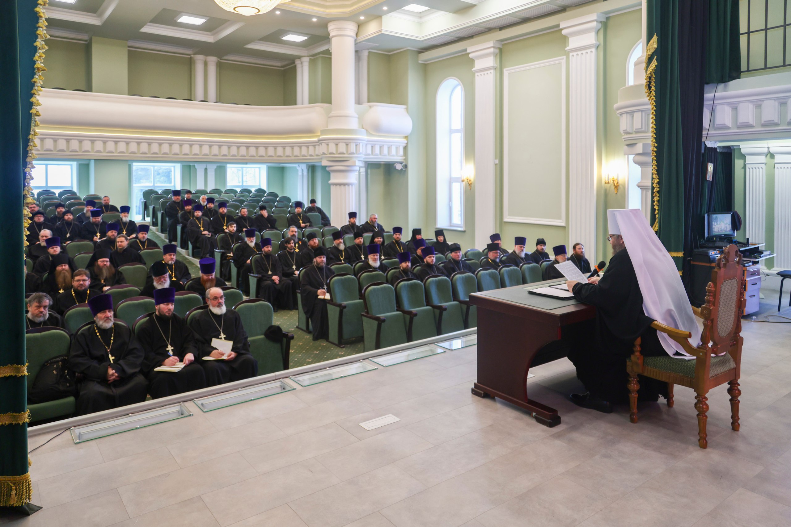 15 декабря 2025 г. по благословению митрополита Тамбовского и Рассказовского Феодосия в актовом зале Тамбовской духовной семинарии состоялось ежегодное Епархиальное собрание Тамбовской епархии. В заседании приняли участие священнослужители, игумены и игумении обителей, настоятели и клирики приходов.