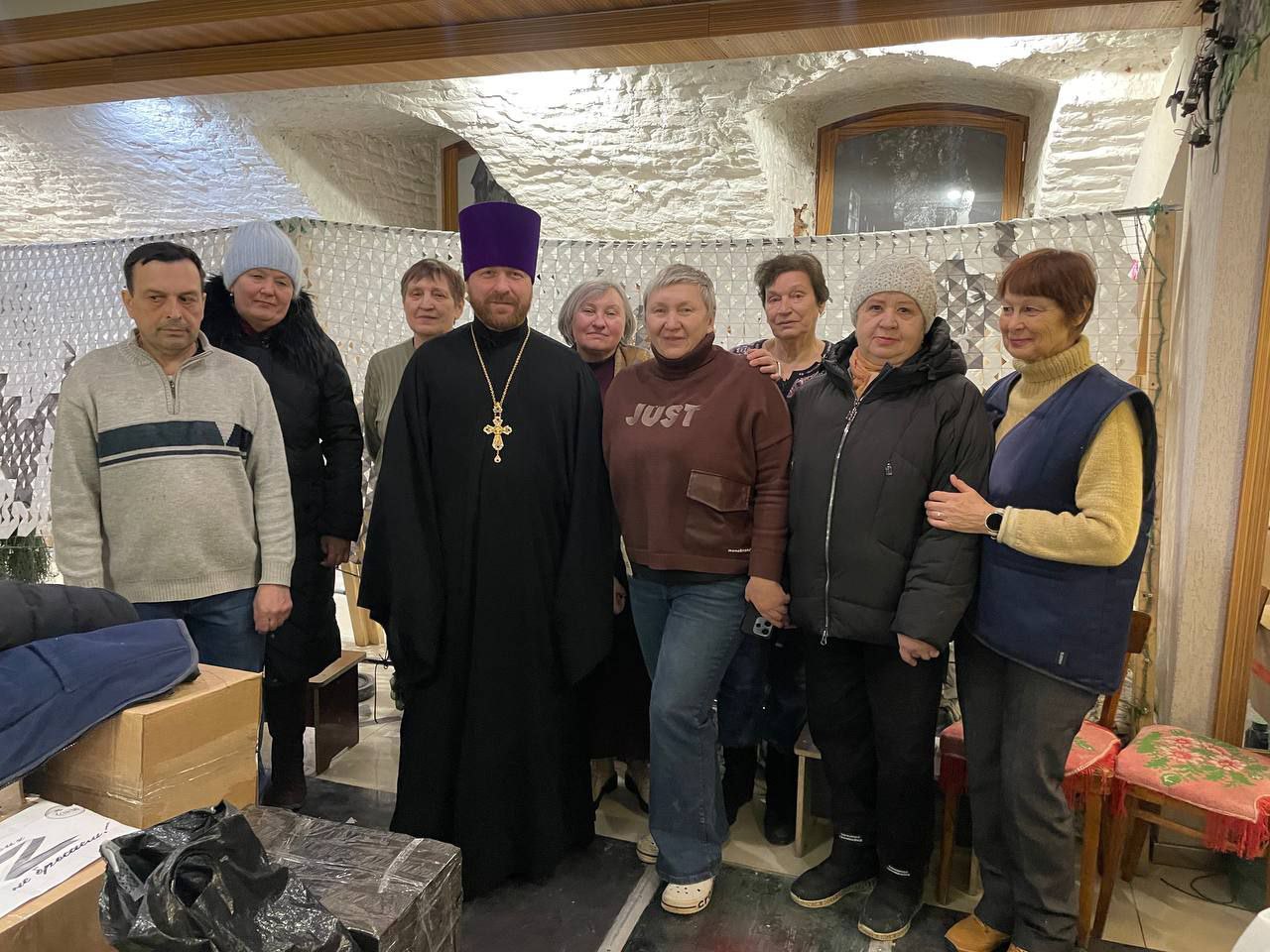 12 февраля настоятель храма священник Димитрий Пимкин посетил пункт сбора гуманитарной помощи воинам СВО «Бригада 68». В этот день в пункте собрались неравнодушные женщины, которые на постоянной основе занимаются плетением маскировочных сетей, сбором и отправкой гуманитарной помощи на фронт.