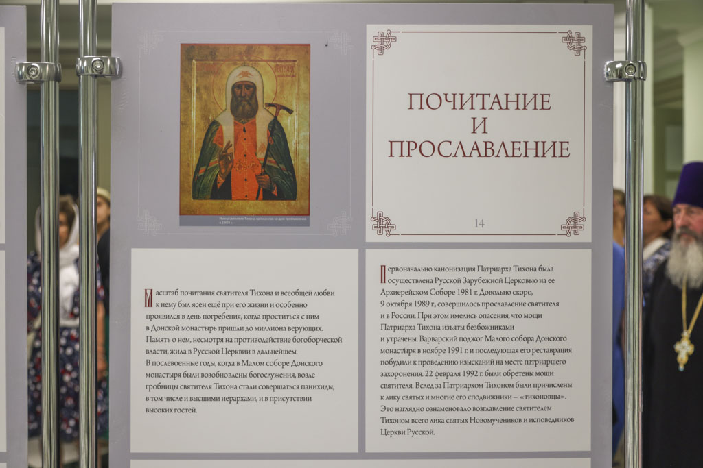 Первую экскурсию по выставке провёл заведующий отделом по культуре и пресс-секретарь Тамбовской епархии протоиерей Виктор Лисюнин. Посетителям выставки подробно рассказали о том, как после длительного Синодального периода святитель Тихон был избран на Патриарший престол Русской Православной Церкви, сразу же столкнулся с гонениями на христиан и с честью прошёл все испытания.