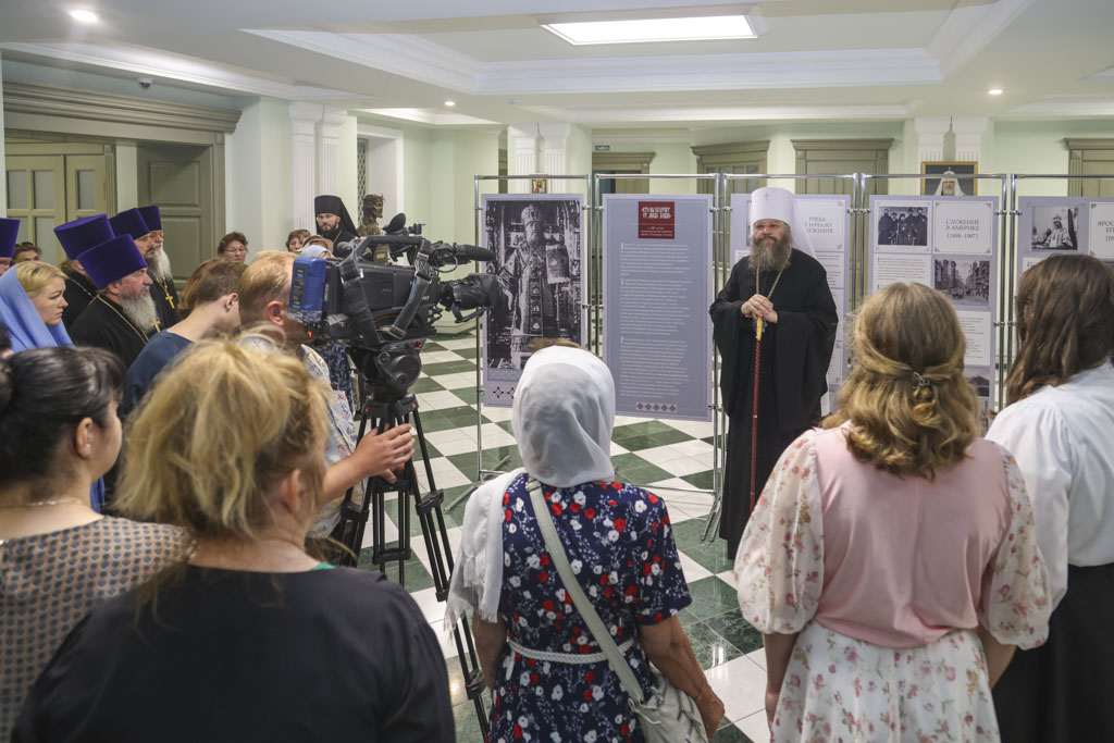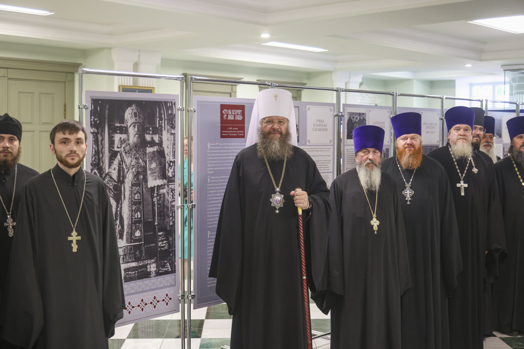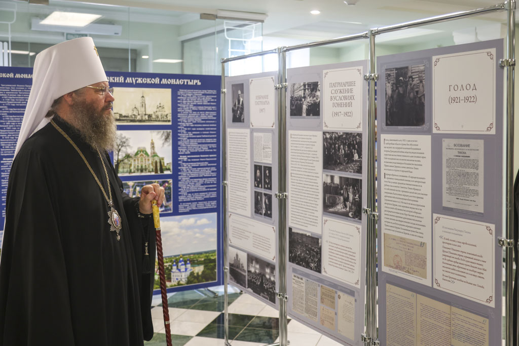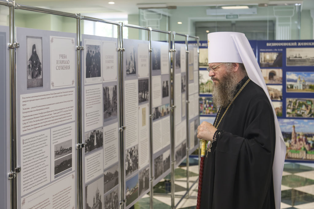 Открытие выставки возглавил Высокопреосвященный Феодосий, митрополит Тамбовский и Рассказовский. В своём выступлении владыка отметил особую значимость жизненного пути святителя Тихона и его подвижнического служения Церкви и людям.