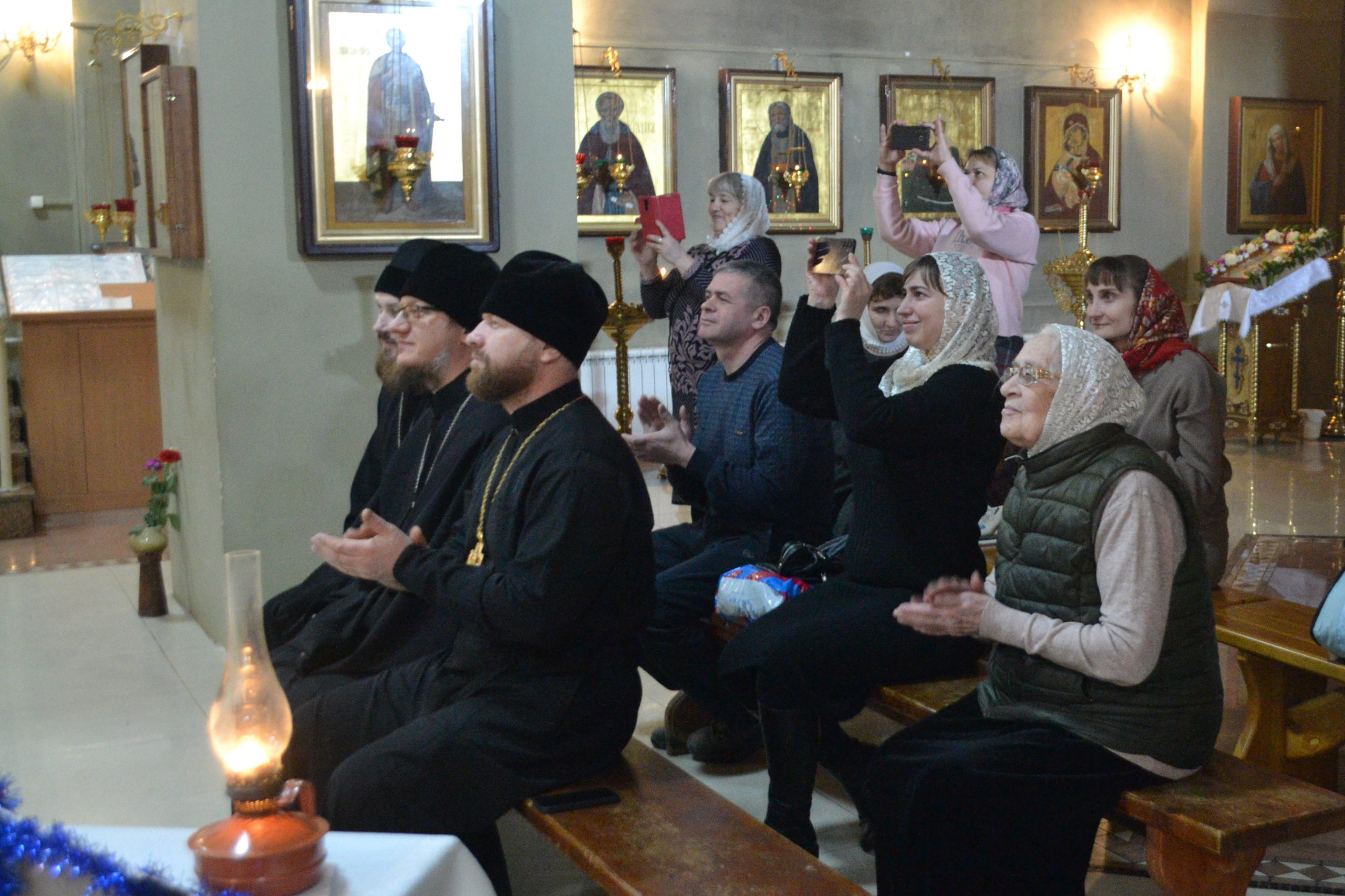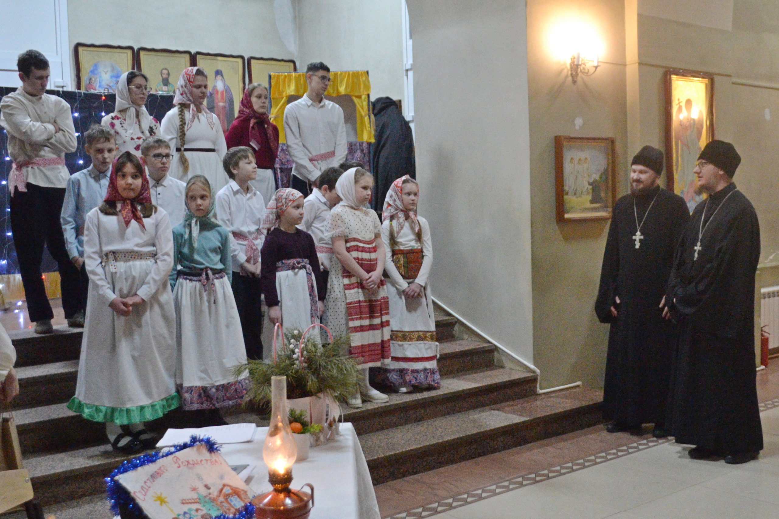 Воспитанники школы совместно с педагогами и родителями подготовили концерт для всех собравшихся: духовенства, работников и прихожан храма. Звучали песни и стихи, прославляющие светлый праздник Рождества Христова. На праздник заглянули христославы, которые пожелали всем собравшимся радости и достатка, и поздравили гостей весёлой песней.