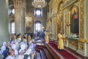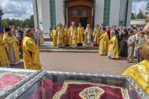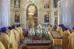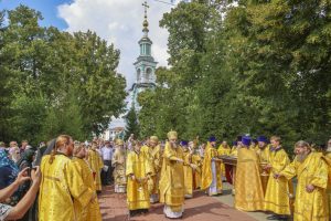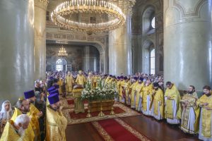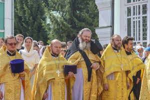 После Божественной литургии был совершен праздничный молебен и крестный ход с честными мощами святителя Питирима, епископа Тамбовского. Во главе с архипастырями духовенство и верующие прошли от центрального входа в храм к памятнику святителю Питириму, установленному на Соборной площади.