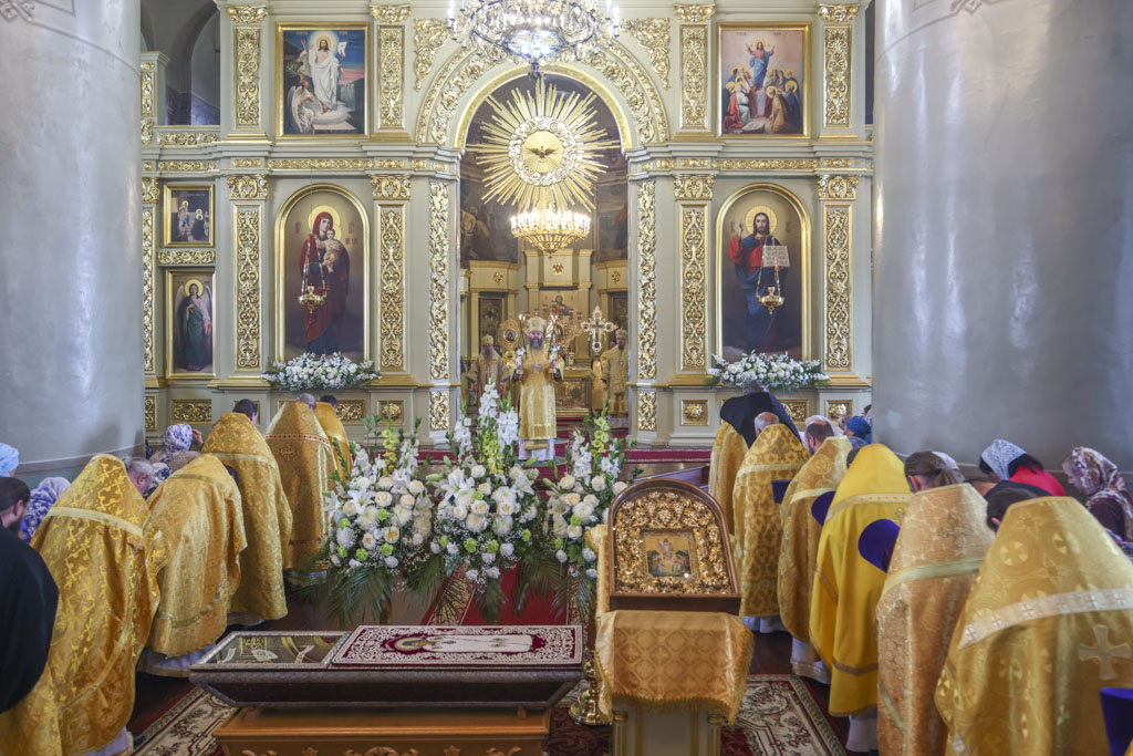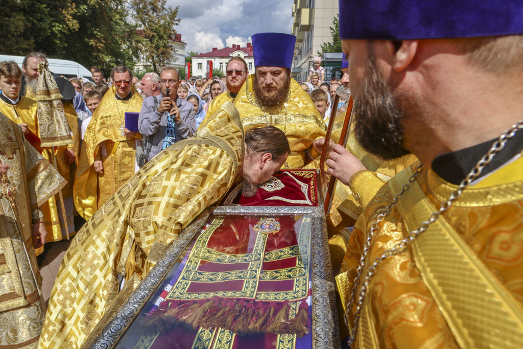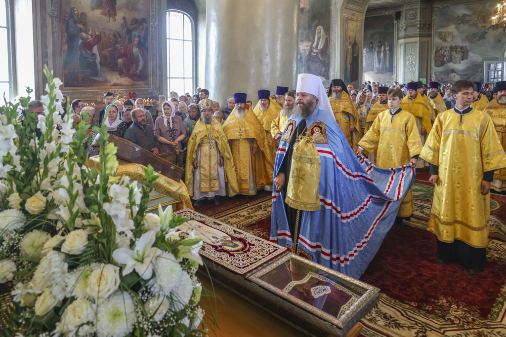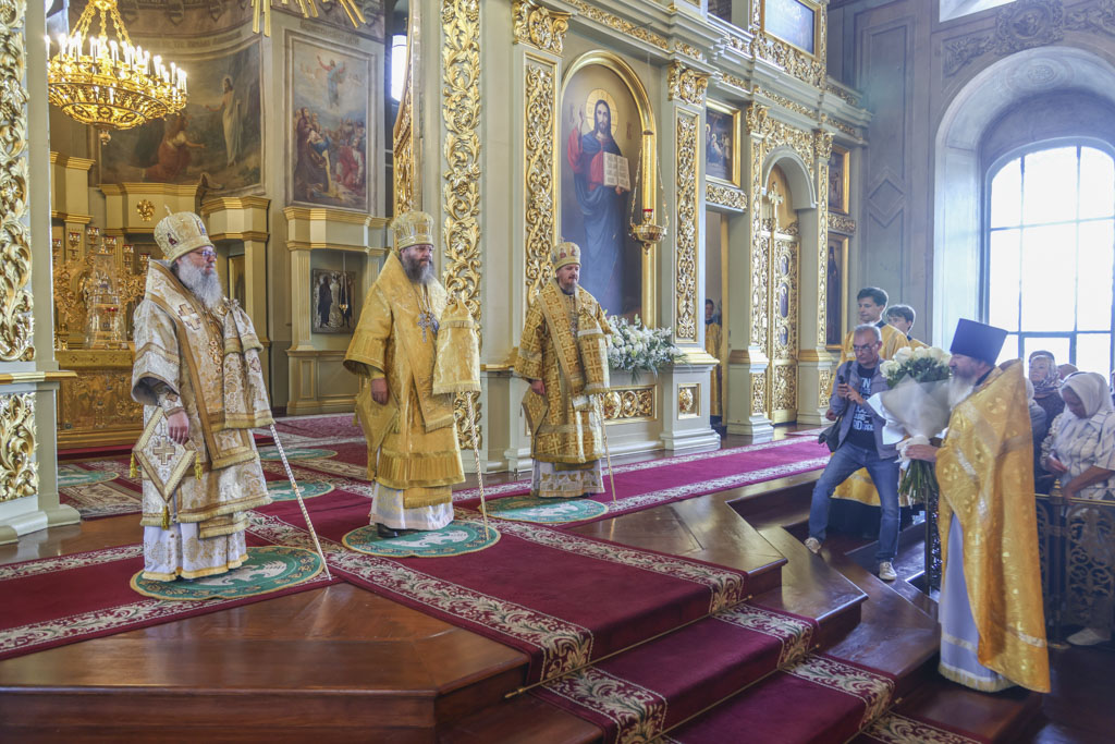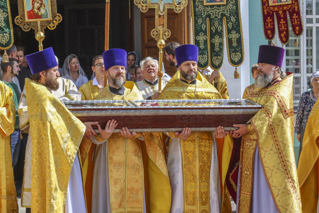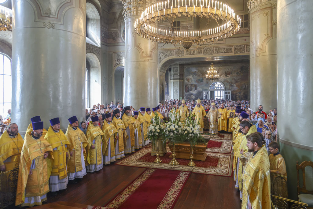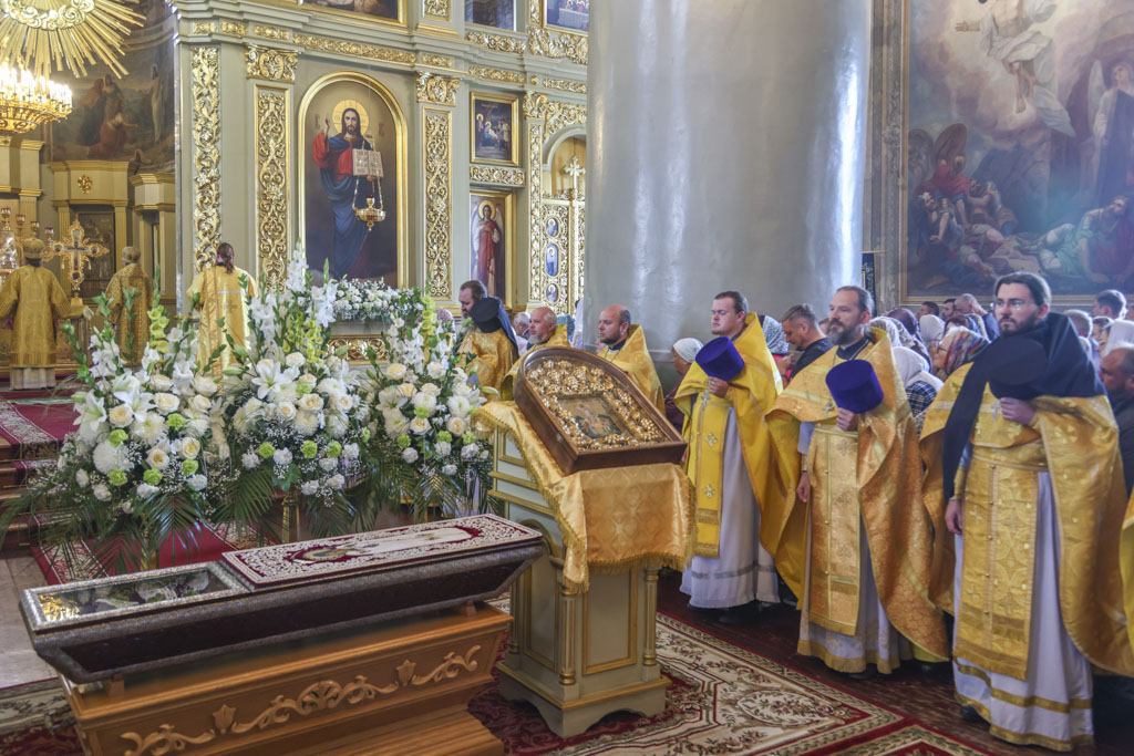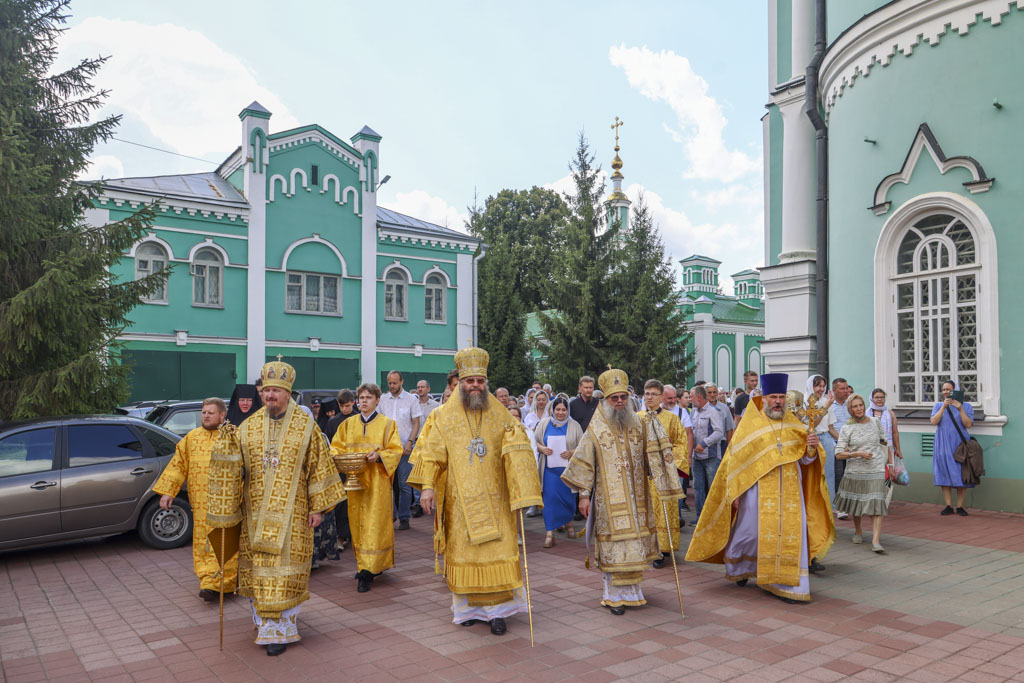 После Божественной литургии был совершен праздничный молебен и крестный ход с честными мощами святителя Питирима, епископа Тамбовского. Во главе с архипастырями духовенство и верующие прошли от центрального входа в храм к памятнику святителю Питириму, установленному на Соборной площади.