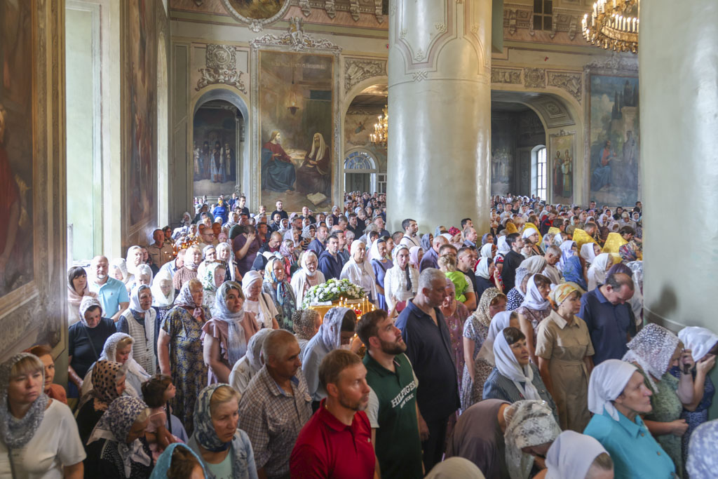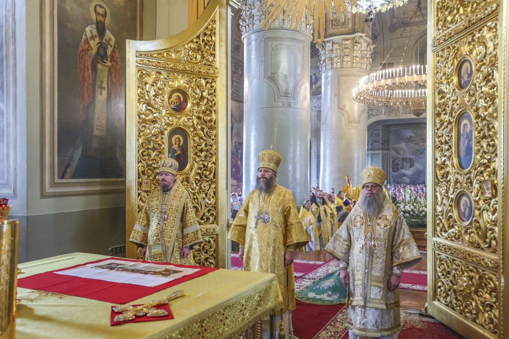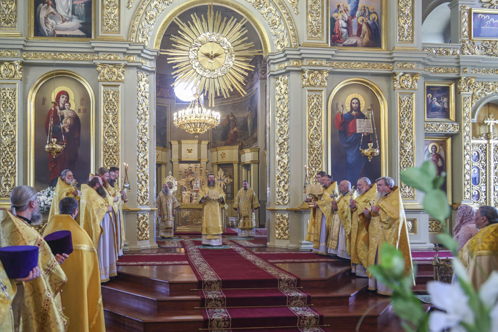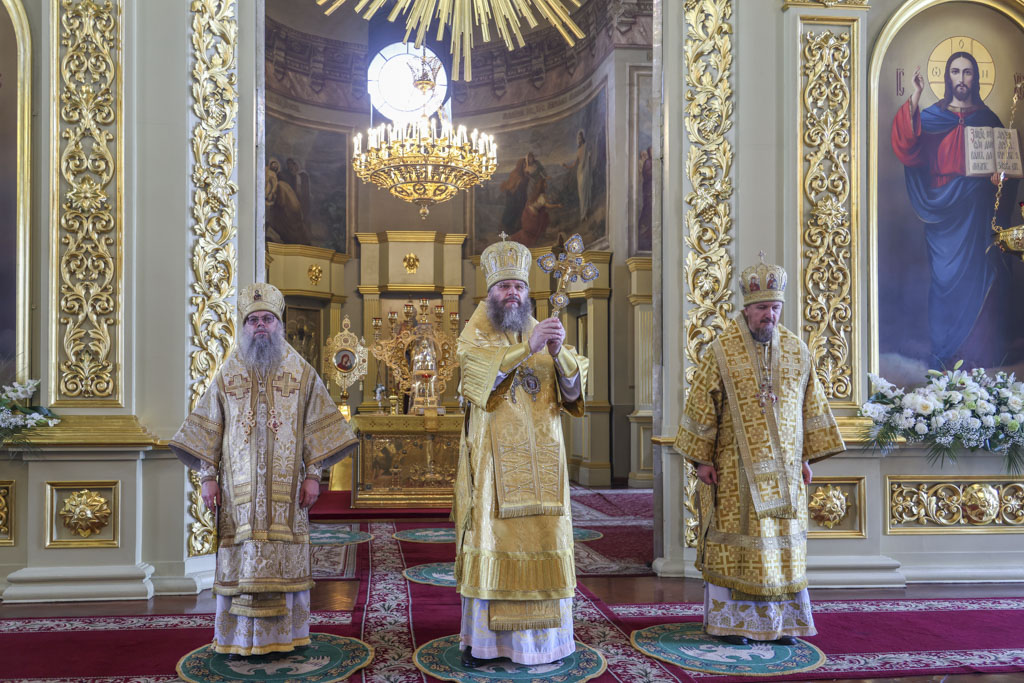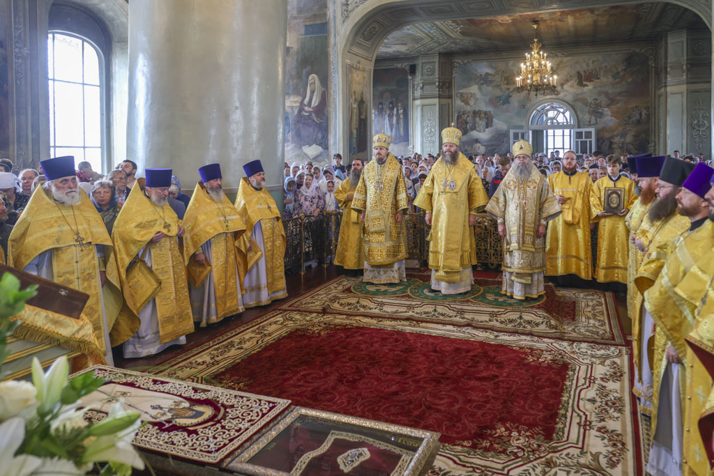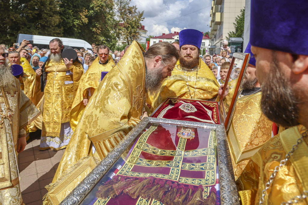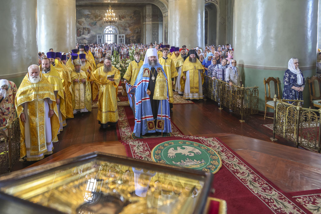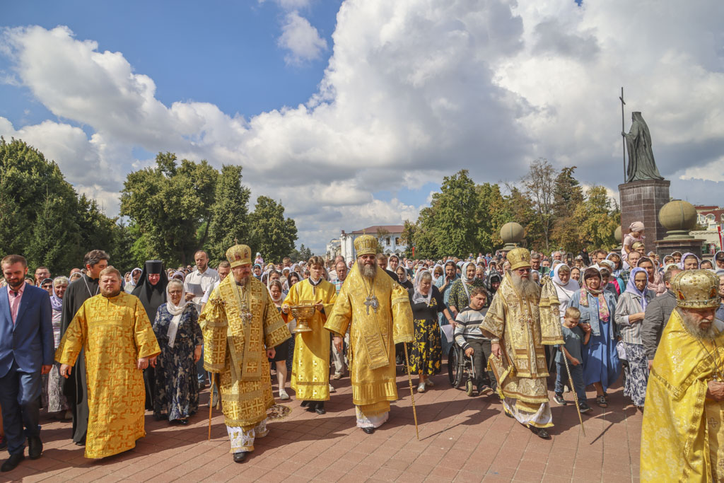 После Божественной литургии был совершен праздничный молебен и крестный ход с честными мощами святителя Питирима, епископа Тамбовского. Во главе с архипастырями духовенство и верующие прошли от центрального входа в храм к памятнику святителю Питириму, установленному на Соборной площади.