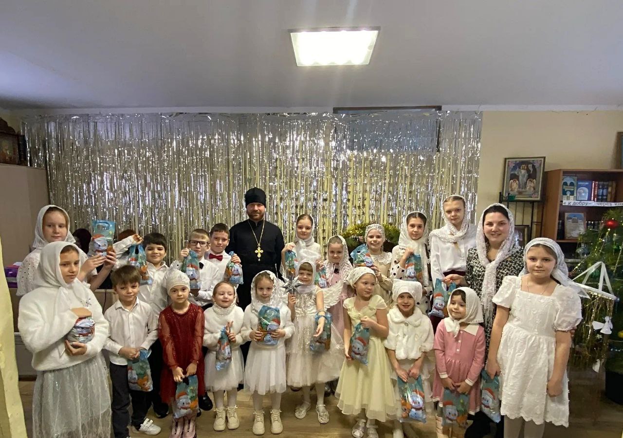 Воспитанники воскресной школы подготовили для прихожан рождественскую сценку, исполнили колядки и представили сольные танцевальные номера.