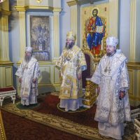 По завершении вечерни с поздравительным словом к Его Высокопреосвященству и всем присутствующим в соборе обратились епископ Уваровский и Кирсановский Игнатий и епископ Мичуринский и Моршанский Гермоген.
