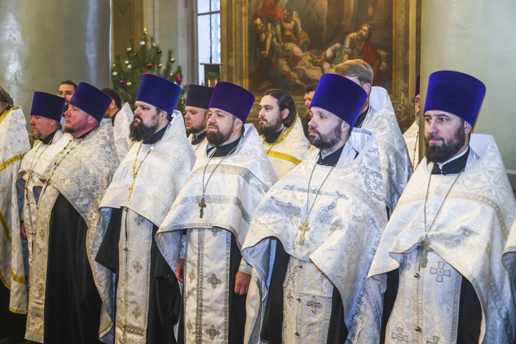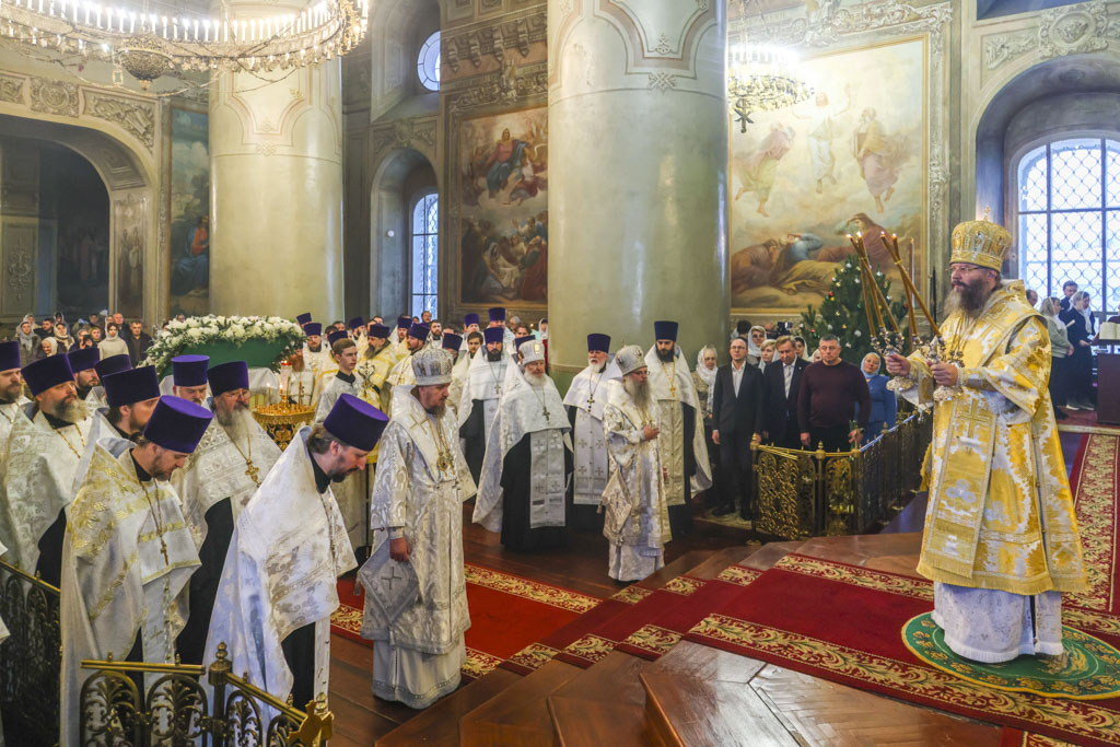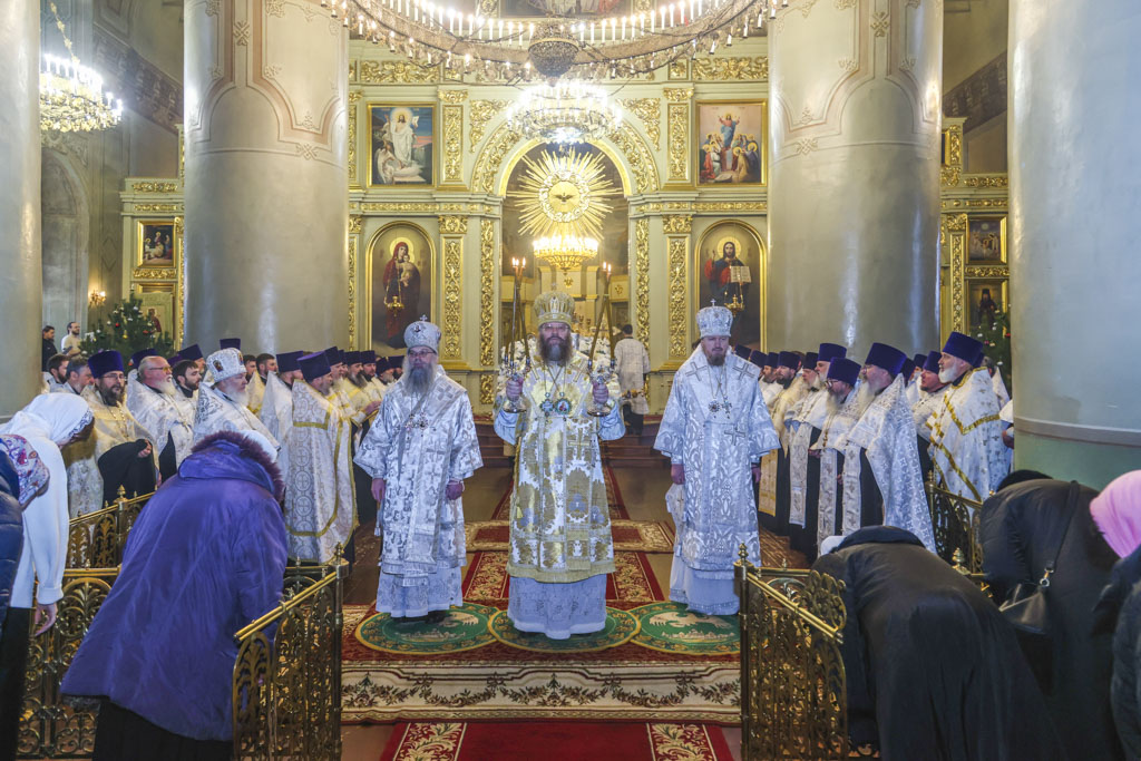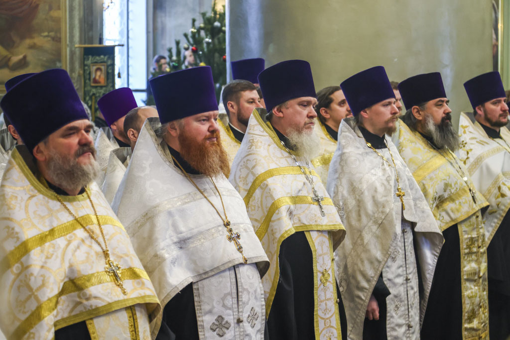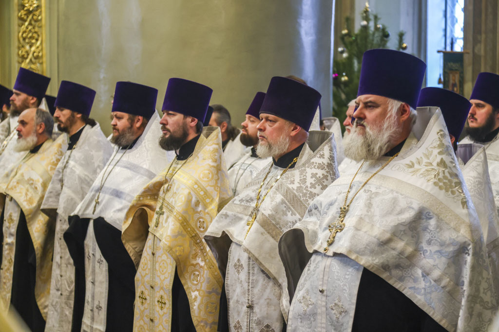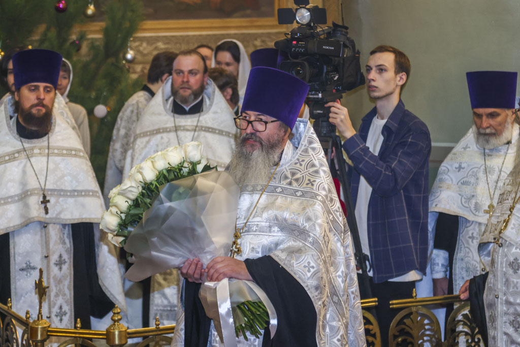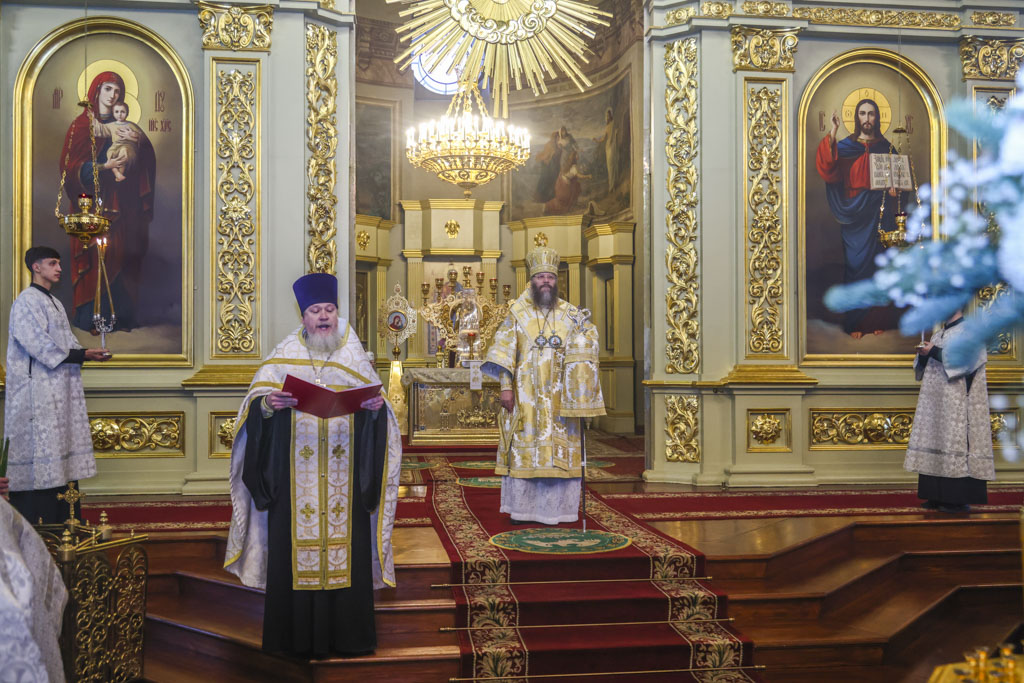 После чтения Евангелия клирик Спасо-Преображенского кафедрального собора протоиерей Виктор Лисюнин огласил Рождественское послание митрополита Тамбовского и Рассказовского Феодосия архипастырям, пастырям, монашествующим, всей богоспасаемой пастве Тамбовской митрополии.