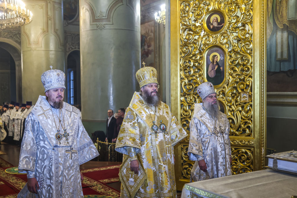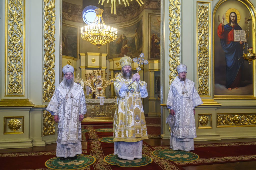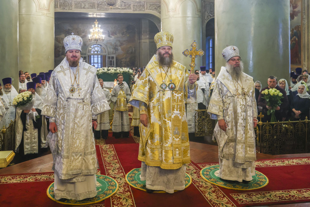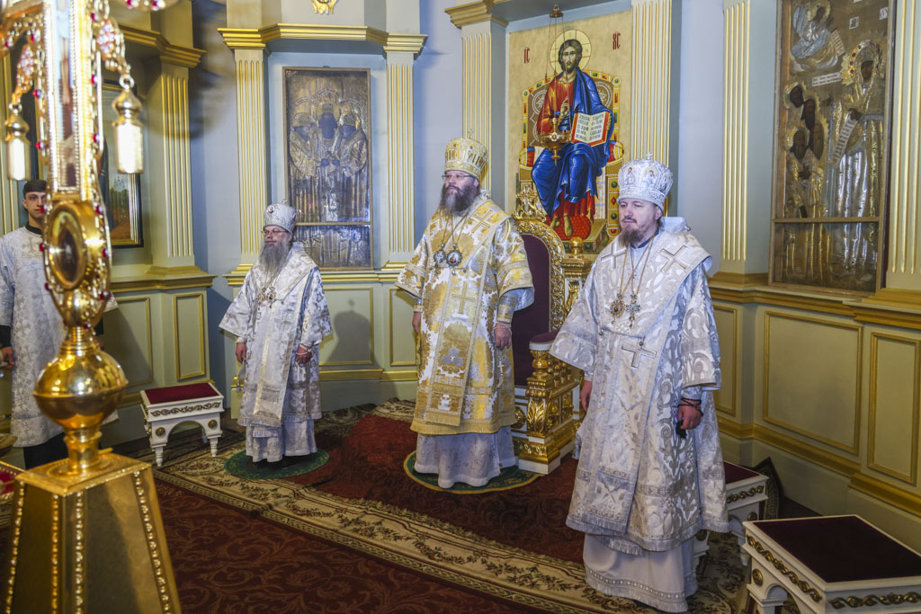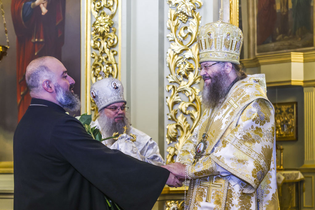 По завершении вечерни с поздравительным словом к Его Высокопреосвященству и всем присутствующим в соборе обратились епископ Уваровский и Кирсановский Игнатий и епископ Мичуринский и Моршанский Гермоген.