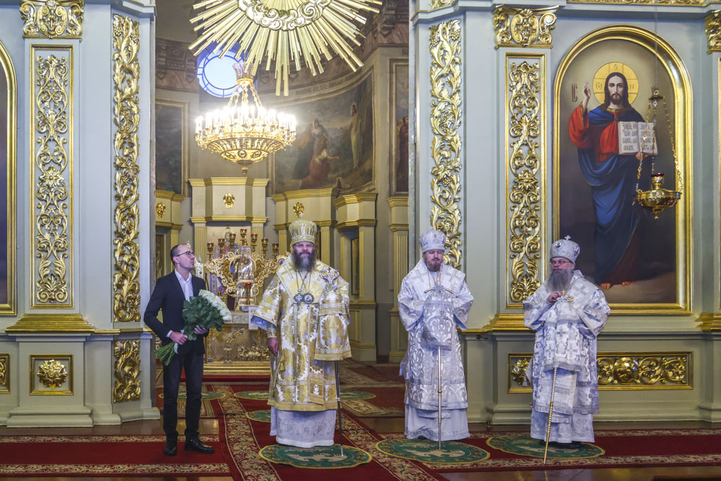 От лица главы Тамбовской области Е.А. Первышова митрополита Феодосия поздравил советник главы Тамбовской области А.Ю. Смертин.