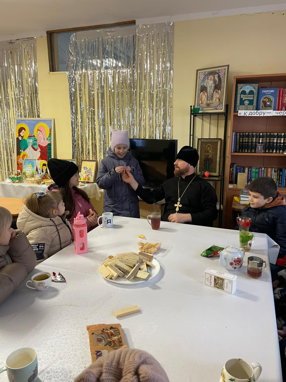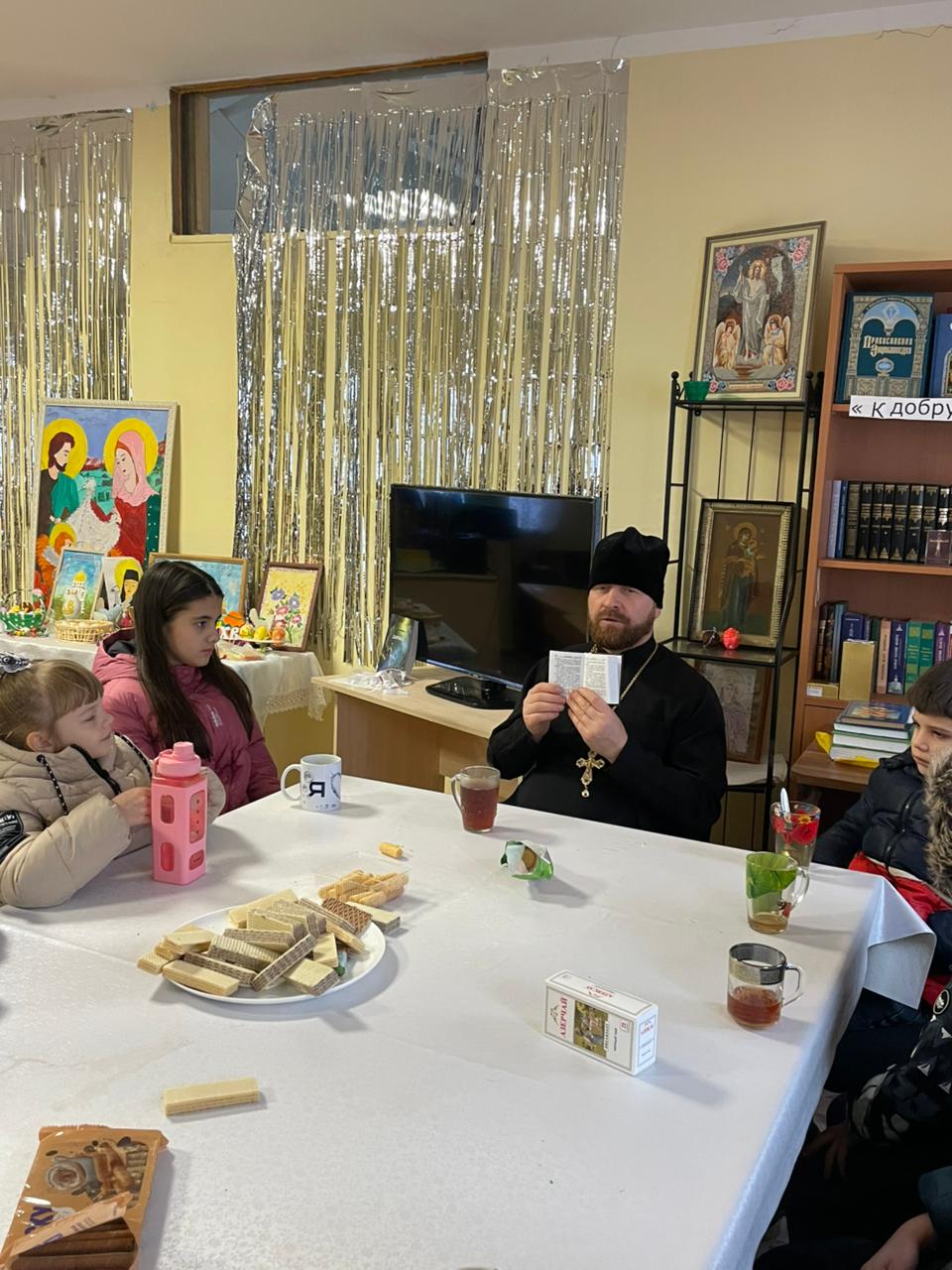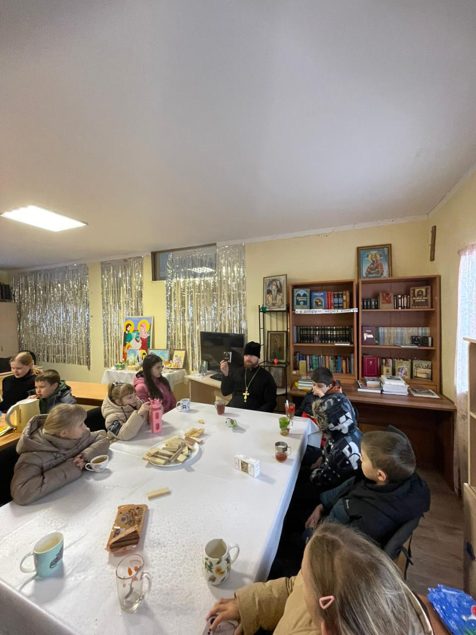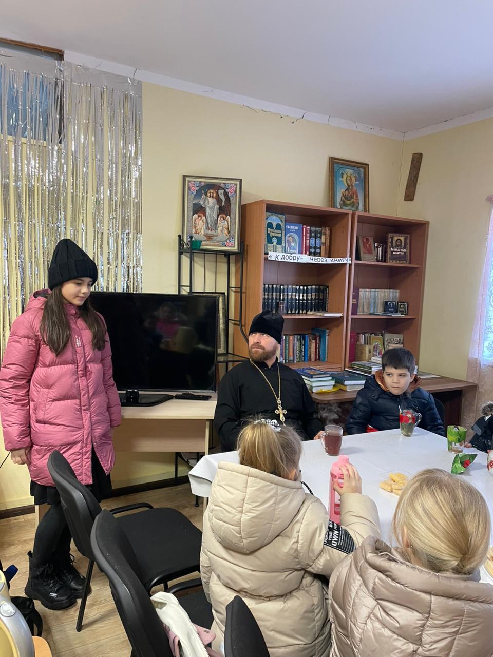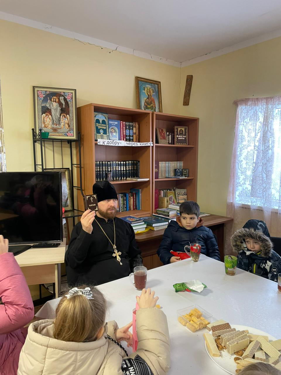 В ходе встречи отец Димитрий рассказал детям о Святом Евангелии, событиях евангельской истории, связанных с рождением Спасителя, а также подробно остановился на значении даров, принесённых Богомладенцу волхвами.