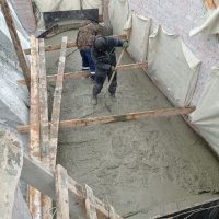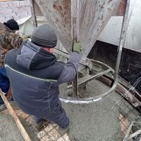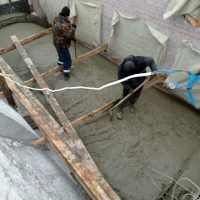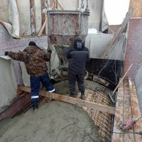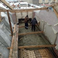 Милостью Божией и тяжелейшим трудом строителей продолжается возведение перекрытий будущего храма. В настоящее время ведётся заливка монолитного перекрытия над хорами с южной стороны здания.