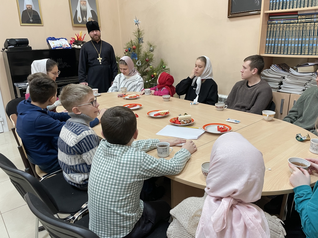 11 января занятие воскресной школы при Феофановском храме посетил настоятель — священник Димитрий Пимкин.