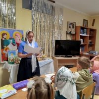 На уроке Закона Божия ребята продолжили изучение темы «Житие моего святого». Каждый подготовил небольшой рассказ о святом, имя которого он носит, поделился своими впечатлениями и знаниями о жизни и подвигах угодников Божиих.