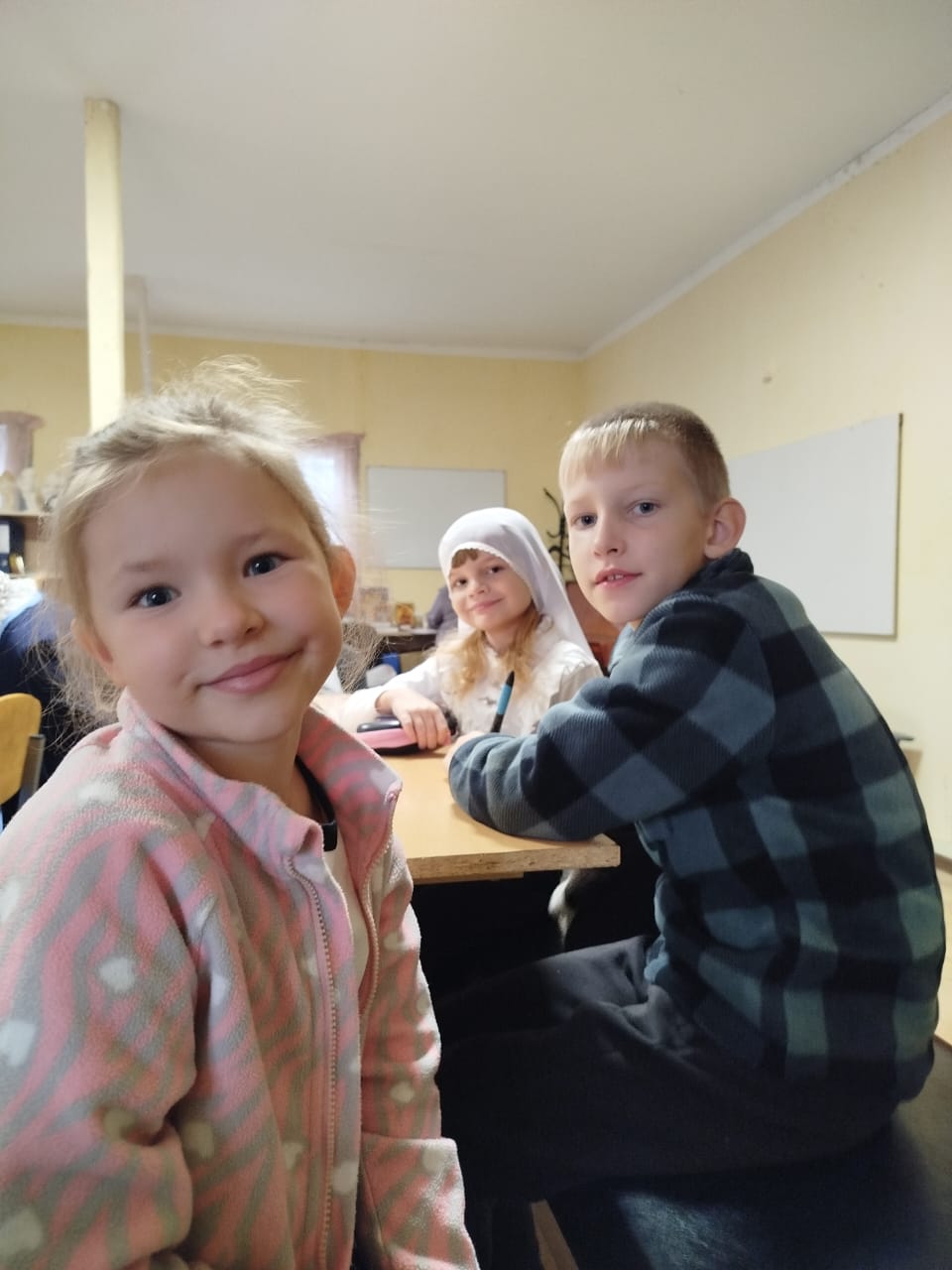 После занятия по Закону Божию прошло первое занятие по церковному пению. Дети познакомились с основами певческого послушания, узнали о значении церковного хора в богослужении и попробовали исполнить простые песнопения.